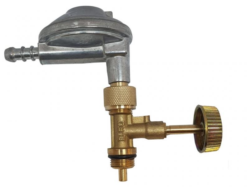 Souprava - regulátor tlaku pro připojení nízkotlakých spotřebičů, jako jsou například vařiče, grily, topidla, k 2 kg propan-butanové lahvi.