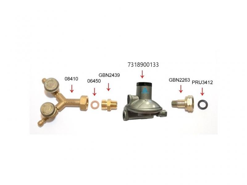 Regulátor lze, vzhledem k své kapacitě, využít jako jednoduchou rozbočovací stanici: viz. obrázek kde jsou uvedeny objednací kódy potřebného.