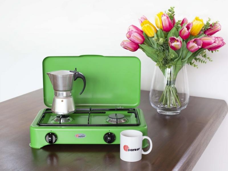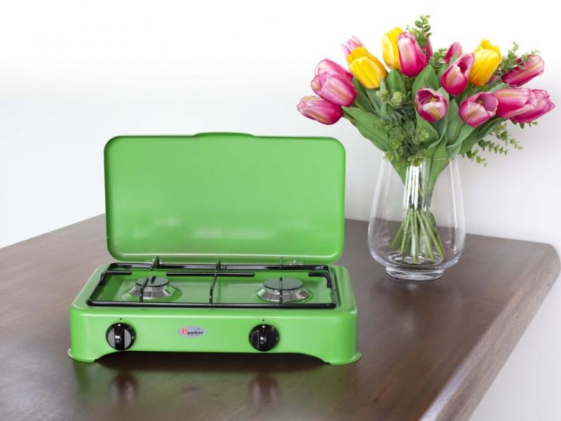 Robustní vařič na propan butan retro konstrukce je vyráběn firmou CF PARKER již několik desetiletí, změny jsou pouze ve stále vyšší kvalitě zpracování díky moderním výrobním linkám a vyššímu důrazu na bezpečnost. Lisovaná ocelová konstrukce a víko vařiče jsou lakované práškovou barvou s moderním odstínem. Vařič je vybaven hořáky s hliníkové pevnostní slitiny, rozptylovače jsou litinové (povrchová úprava smalt). Ocelový rošt je odnímatelný a stejně jako rozptylovače je smaltovaný černým odstínem.